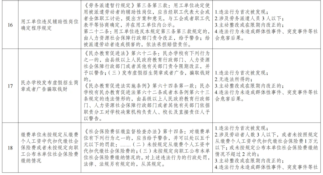 一、人社首次印发:18种劳动违法行为符合条件后不再处罚