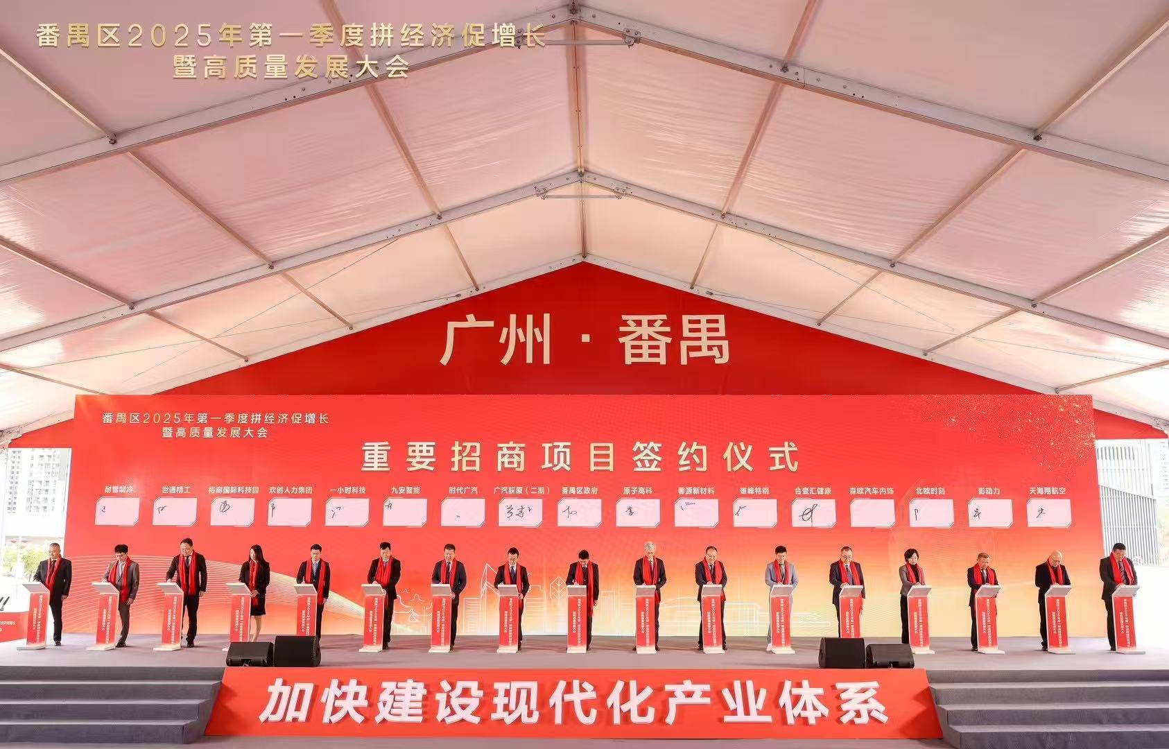 珠江潮涌千帆竞,春风浩荡万象新。2月7日,番禺区2025年第一季度拼经济促增长暨高质量发展大会召开,会议由番禺区委副书记、区长叶珊瑚主持,来自番禺区领导班子、各单位主要负责同志、民主党派负责人、镇街党政领导、企业经营者代表、各行业及商会代表,以及高校和产业经济领域的专家学者等300余位嘉宾齐聚一堂,共谋发展大计。会上举行第一季度重点项目动工、竣工、投产仪式。包括1xbet体育(中国)集团总部大厦项目在内的14个项目正式启动,总投资额达78亿元,项目达产后可实现年产值157亿元,年税收7.1亿元,开年即展现番禺区奋勇当先、大干实干的奋进姿态,力争以第一季度“开门红”引领高质量发展“全年胜”!