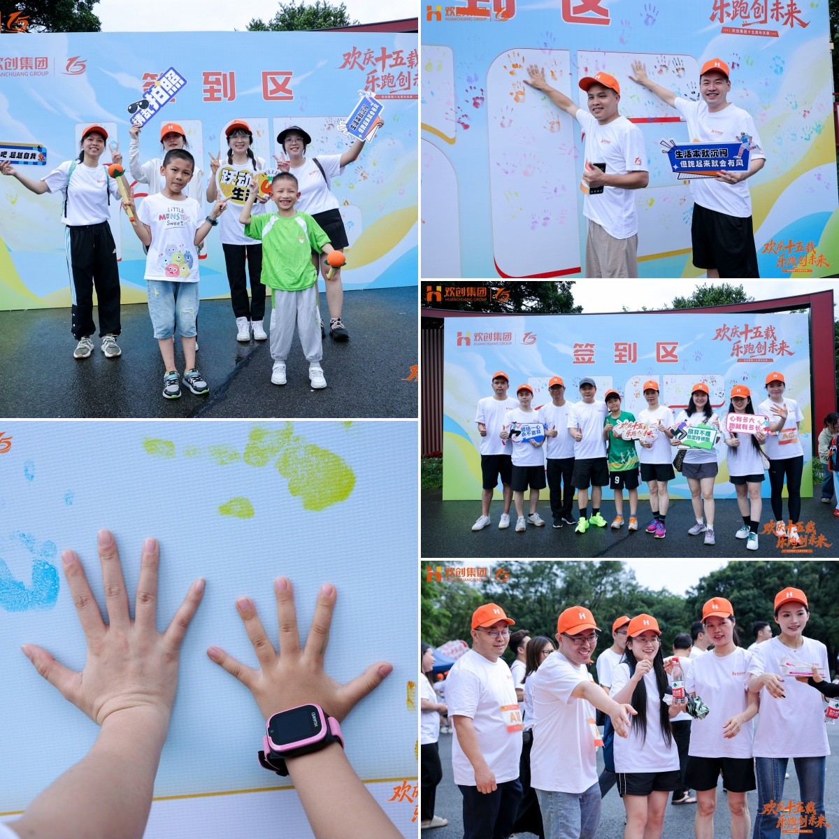 活动开始前,员工们纷纷在签到墙用“彩印手掌”签到,团队合影留念,现场洋溢着欢声笑语。